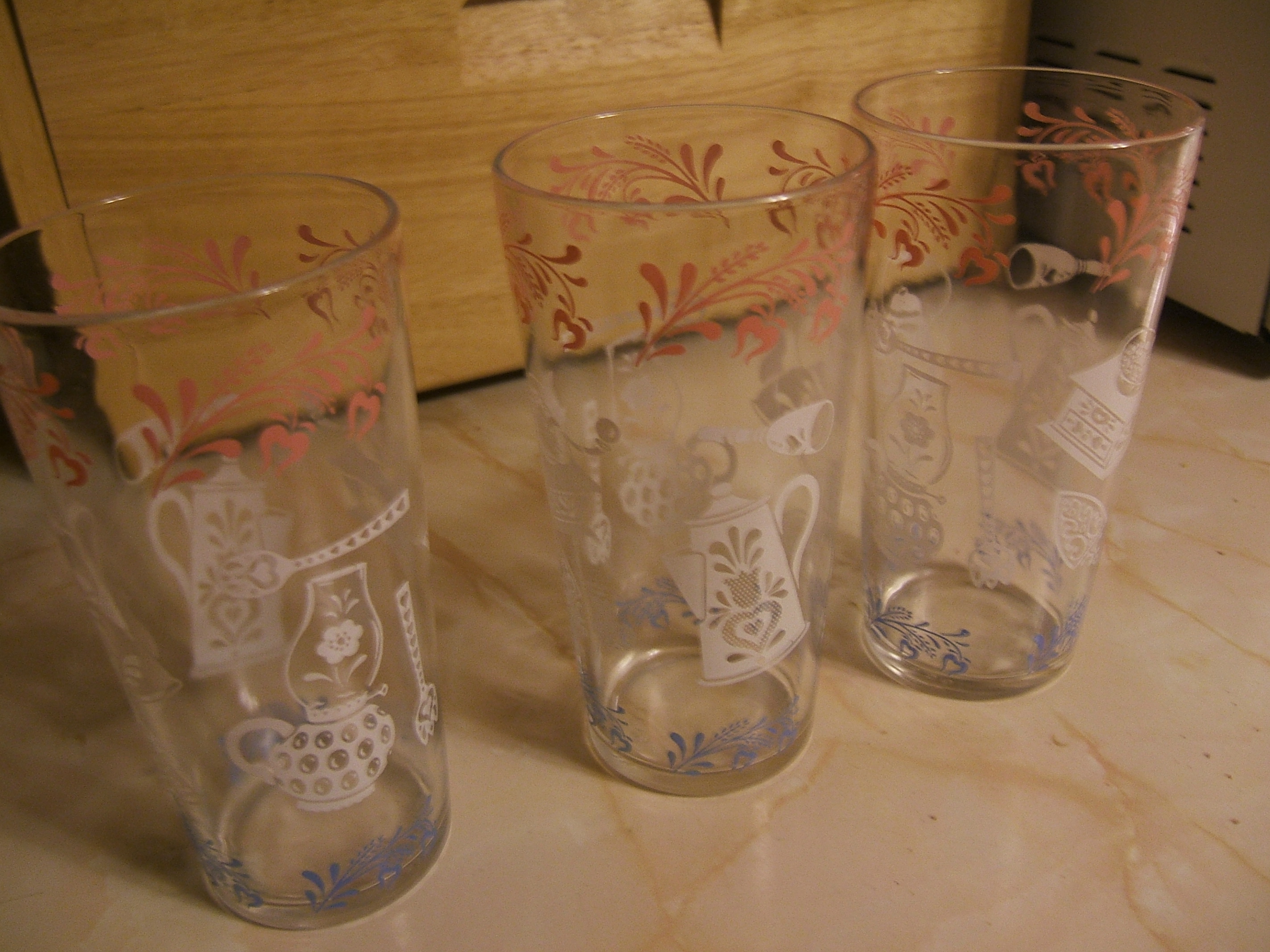 At the rate my husband breaks glasses I couldn’t pass them up. And these vintage glasses are pretty heavy duty. So far, he’s not broken any of these. (Knock on wood).