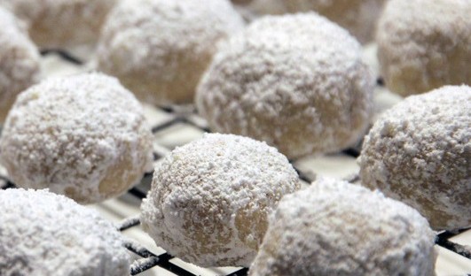Bake at 400° for 10-12 minutes or just until the cookies start to turn light golden-brown. Cool slightly and then, using a sifter, dust cookies with powdered sugar. Makes about 4 dozen cookies.