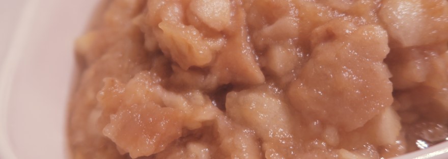 I add 2/3 cup of sugar to my 6 lbs. of cooked McIntosh apples. The type and number of apples you use will dictate the amount of sweetener that you need. Stir in your sugar a little at a time and then taste it. Add more if needed and then taste again. Don’t worry. This isn’t an exact science. Even if you choose to go sugar–free it still tastes good (just not as good as with sugar!). When it tastes good to you, pour it in a bowl and serve it warm!