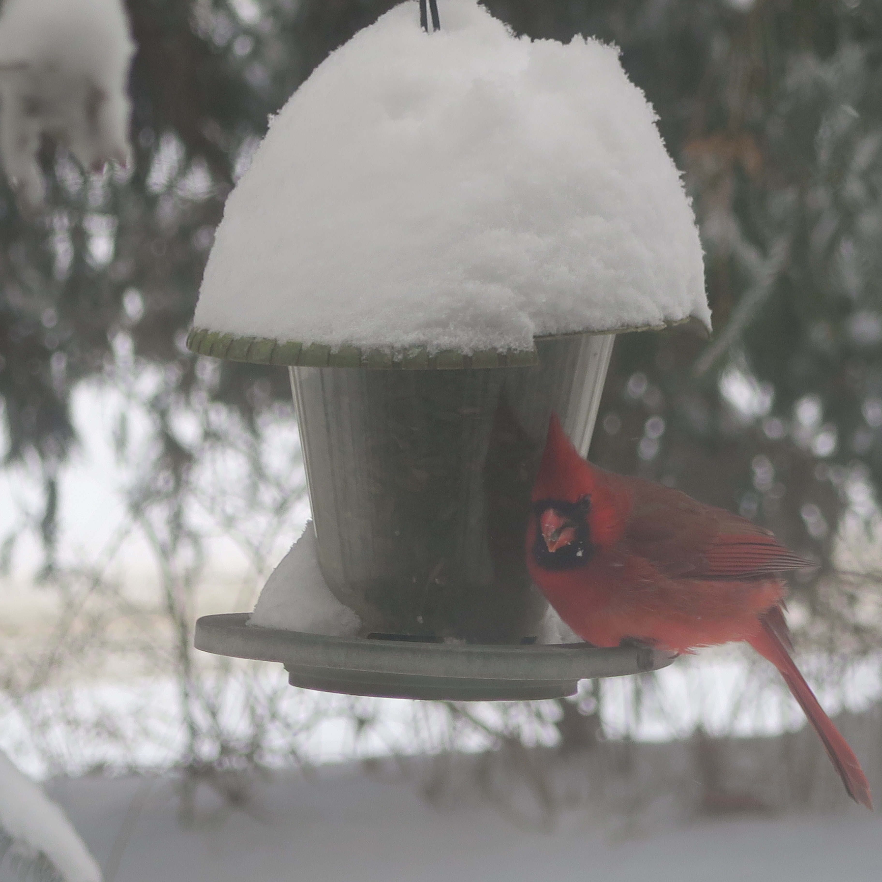 Looking out through my window I hadn’t realized how much snow had fallen overnight. Crossing the front lawn the snow almost reaches my knees. If you have never walked through a foot of snow, I can tell you that it will give you quite a workout.