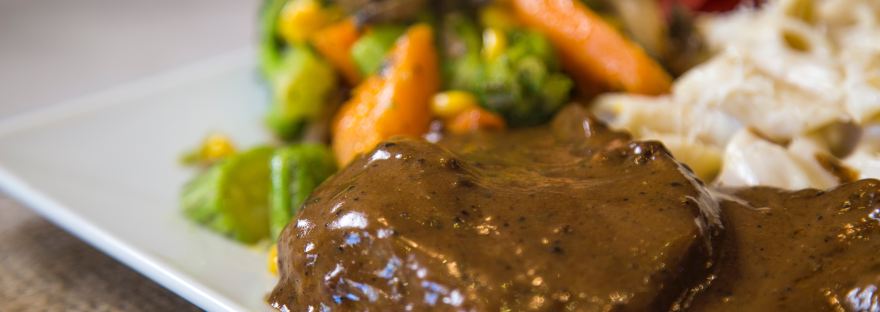 The dish came out of the oven hot and bubbly. The gravy was just thick enough to serve over mashed potatoes without requiring any additional thickening. Since I didn’t have the carrots called for in the recipe, I fixed a side of fresh picked corn on the cob that I got from a neighboring farm. It was the best fast fix comfort meal that I’ve made in a very long time.