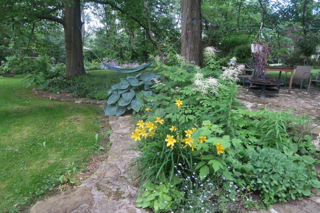 I planted things close together. Much closer than the plant tags recommended. I won’t say the new garden planting provided immediate relief. For the first couple of years, when plants were small, there were a fair number of weeds to pull. The first year, I put down a layer of pine bark mulch. After that, I no longer felt the need. Soon the large leaves of the hosta cast enough shade and the roots of spreading ground cover made the bed unfriendly to all but the occasional weed.