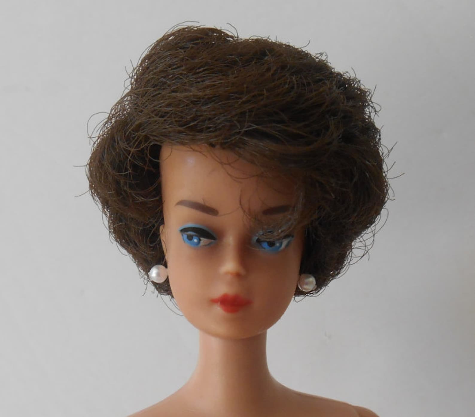 Old dolls – the dolls collectors seek – are not pretty by todays standards. They have a much more refined and sophisticated beauty. They don’t greet you with big eyes and a huge tooth revealing smile. Vintage Barbie’s expression is standoffish. She has more of a Mona Lisa grin than an actual smile. And her hair style is much more modest and natural.