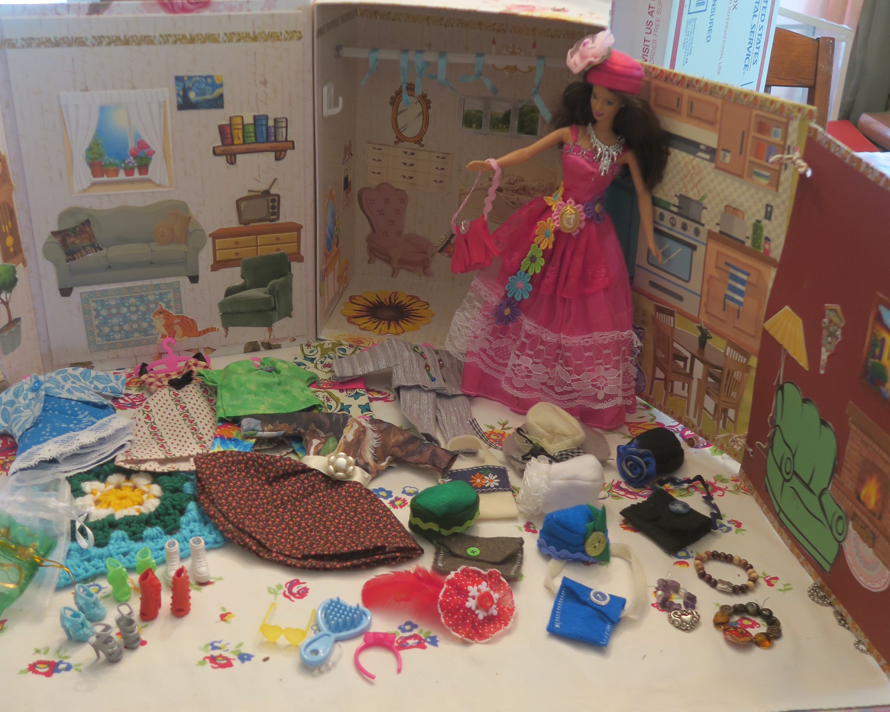 Last year, I found myself the owner of a box of Barbie dolls. My sister and I turned them into a project. Julie made each doll a new wardrobe. I fashioned hats, handbags and necklaces and made each doll a cardboard box “cottage.” We donated 40 doll sets to organizations that provide gifts for needy families during the holidays.