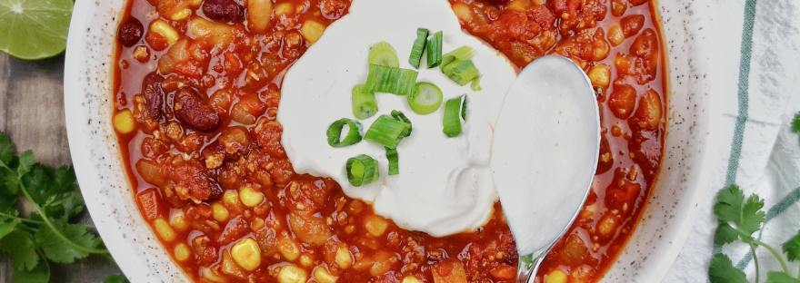 You may enjoy topping this chili with grated cheese, green onions, or sour cream.